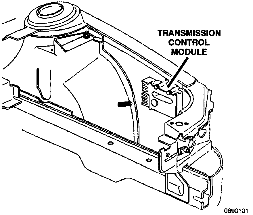 Vehicles equipped with a 42LE electronic transaxle can be identified by the presence of a Transmission Control Module (TCM). See illustration of the TCM.