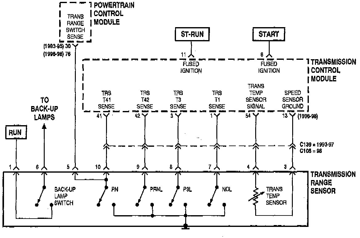 The back-up lamps are activated directly by the Transmission Range Sensor (TRS). When the gearshift selector is in the reverse position, the back-up lamps are energized through the TRS.