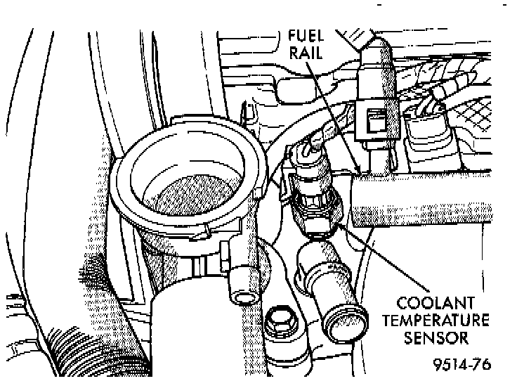 NOTE: The engine coolant temperature sensor threads into the rear of the cylinder head. New sensors have sealant applied to the threads.
