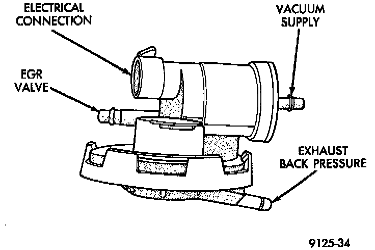 The electronic EGR transducer (EET) contains an electrically operated solenoid and a back-pressure transducer (Fig. 2). The Powertrain Control Module (PCM) operates the solenoid.
