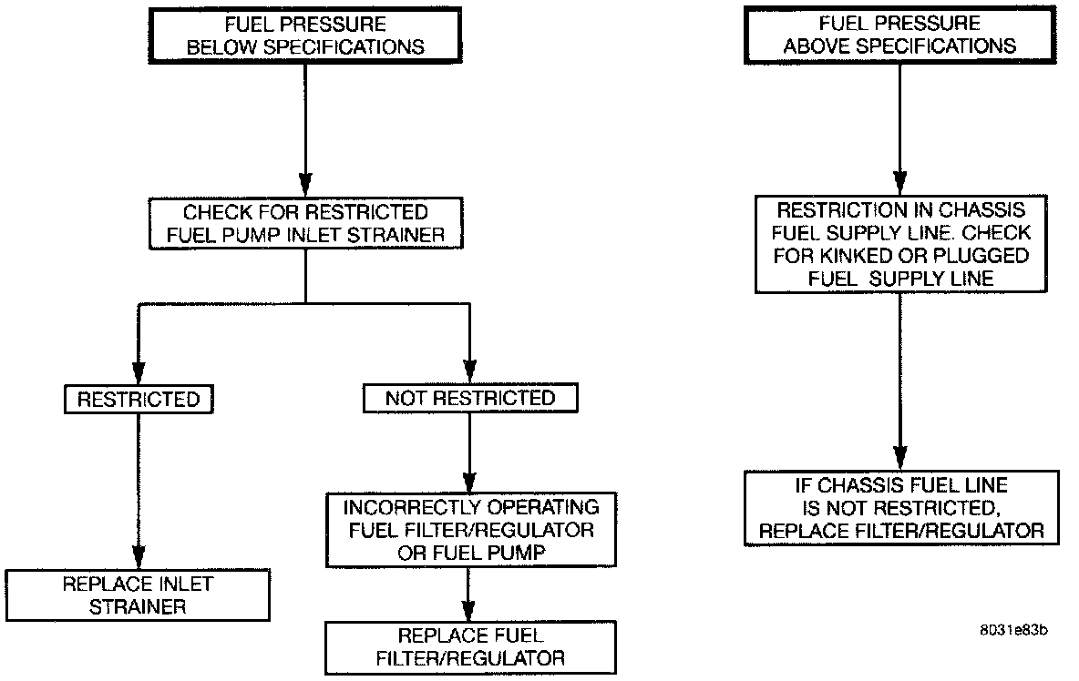 - If fuel pressure is below specifications, refer to the Fuel Pressure Diagnosis Chart (Fig. 9) below.