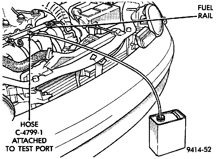 - Fuel pressure will bleed off through the hose into the gasoline container. (Fuel gauge C-4799-A contains hose C-4799-1.)