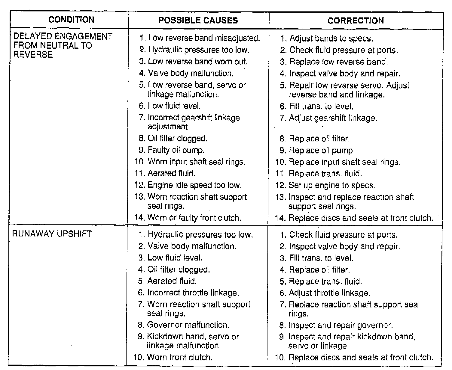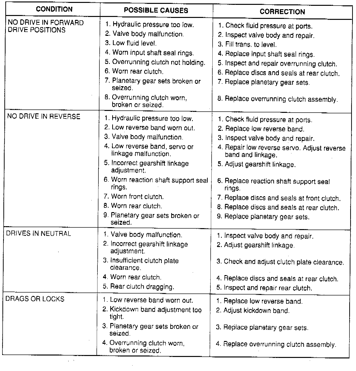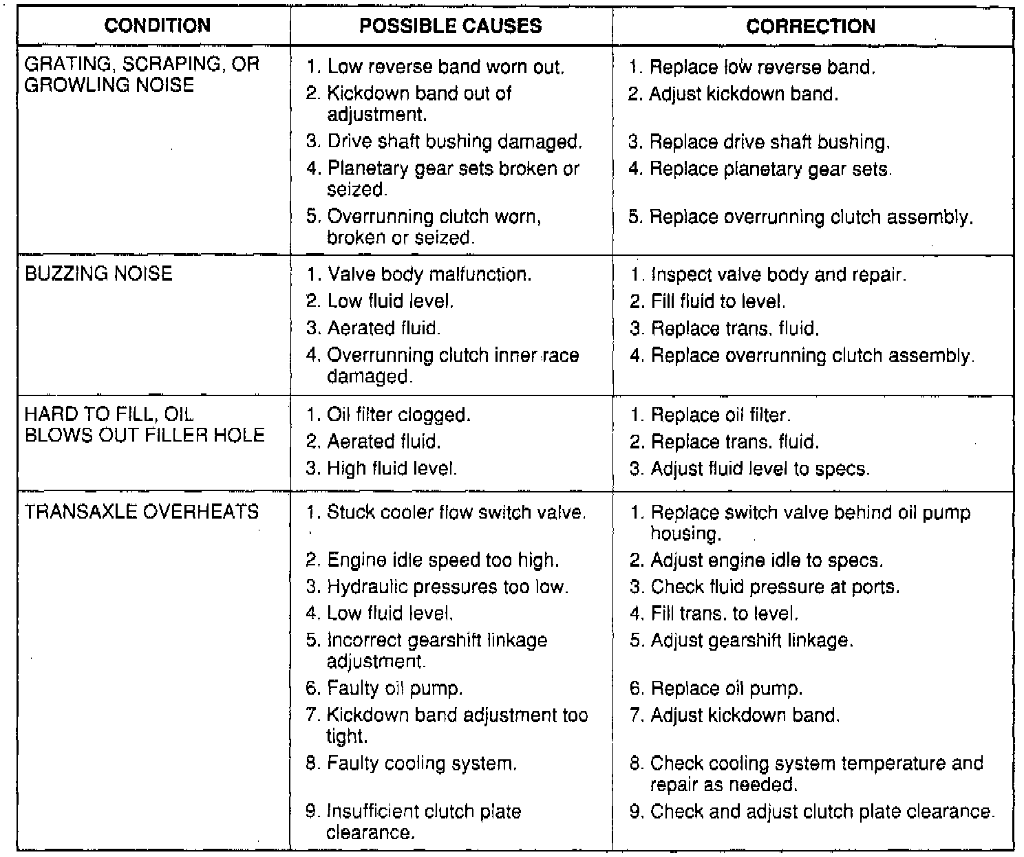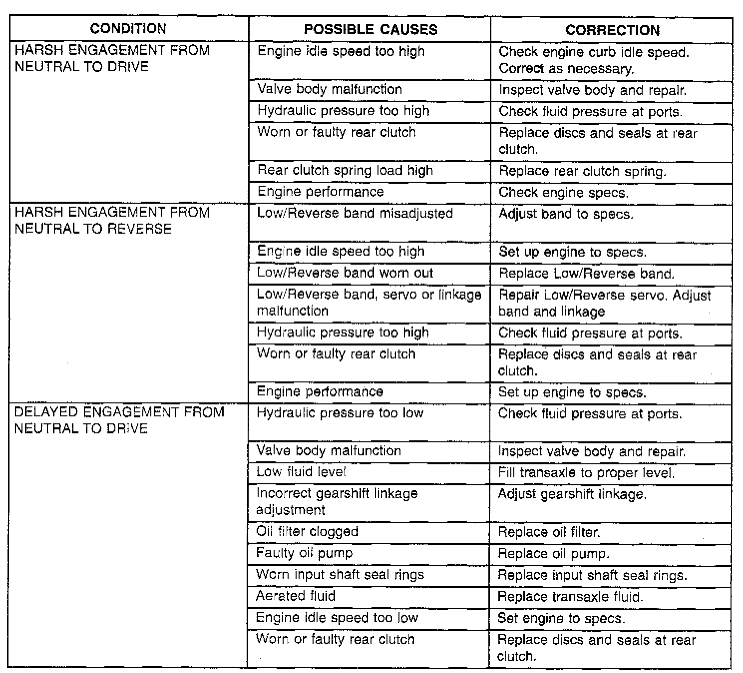 The illustrated charts should be used to help diagnose hydraulic or mechanical faults in the transaxle.