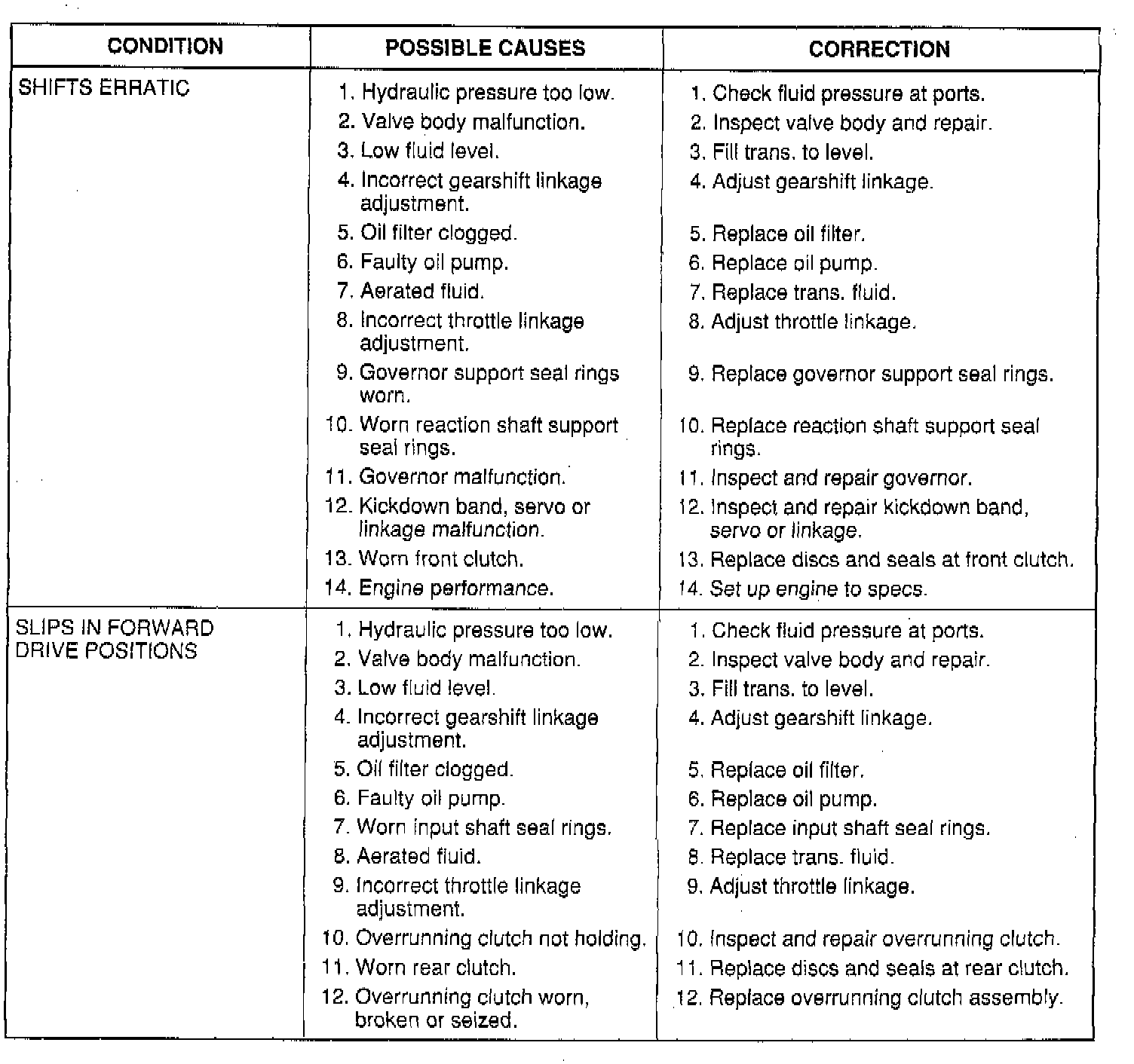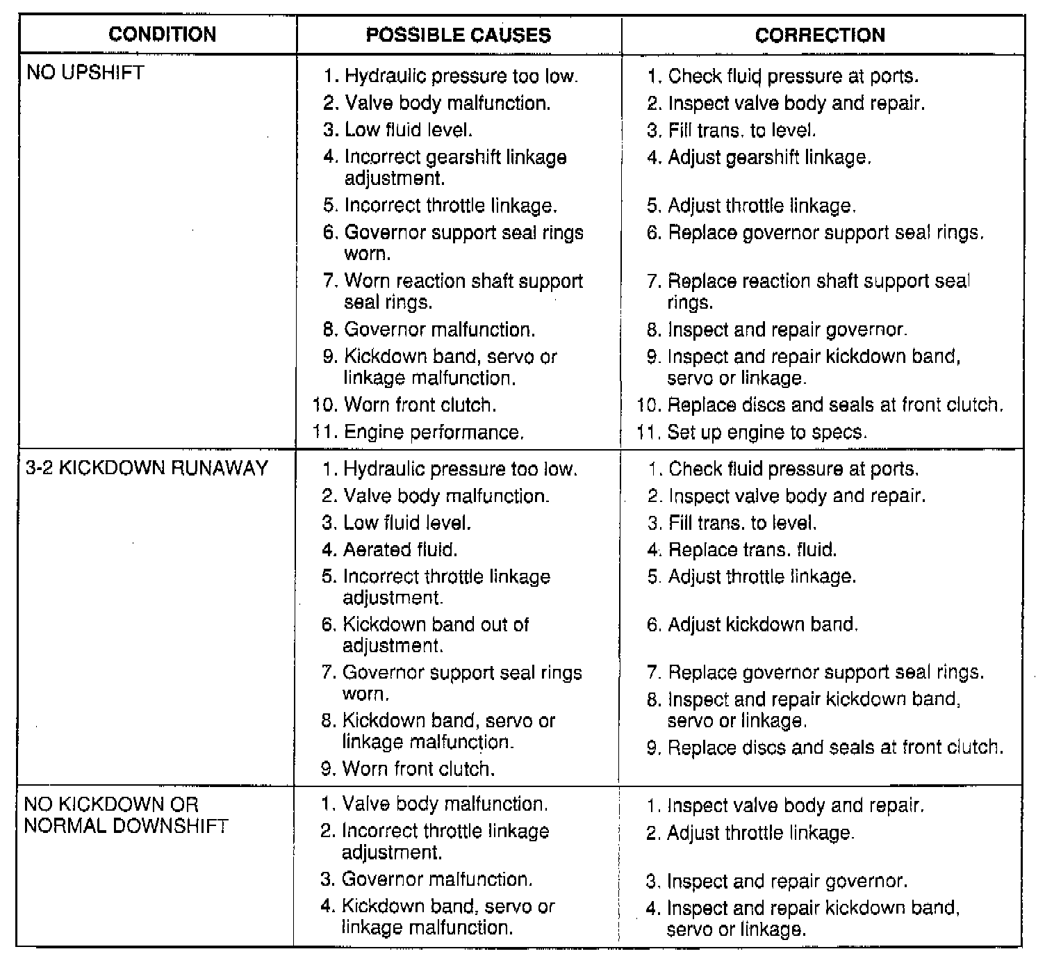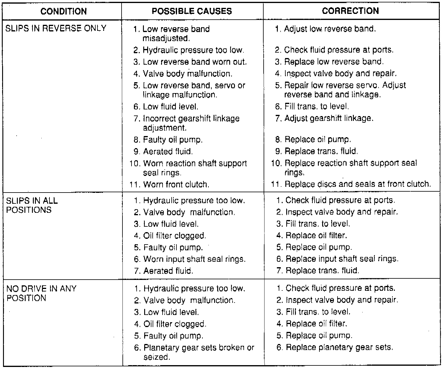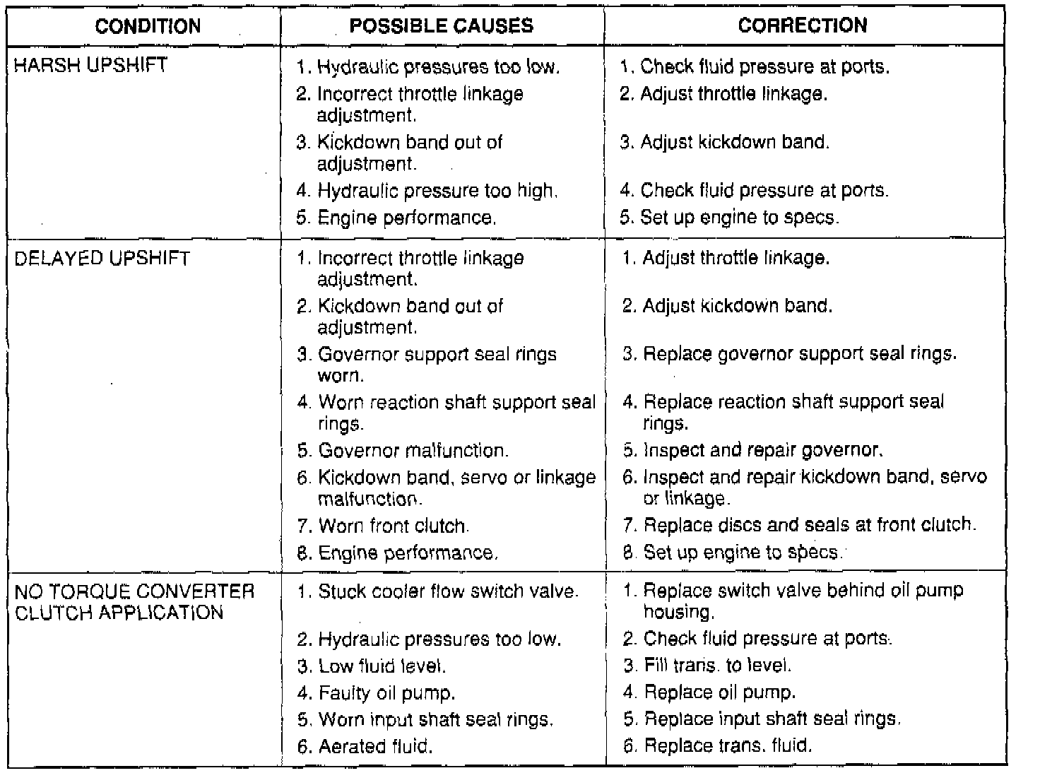 The illustrated charts should be used to help diagnose hydraulic or mechanical faults in the transaxle.