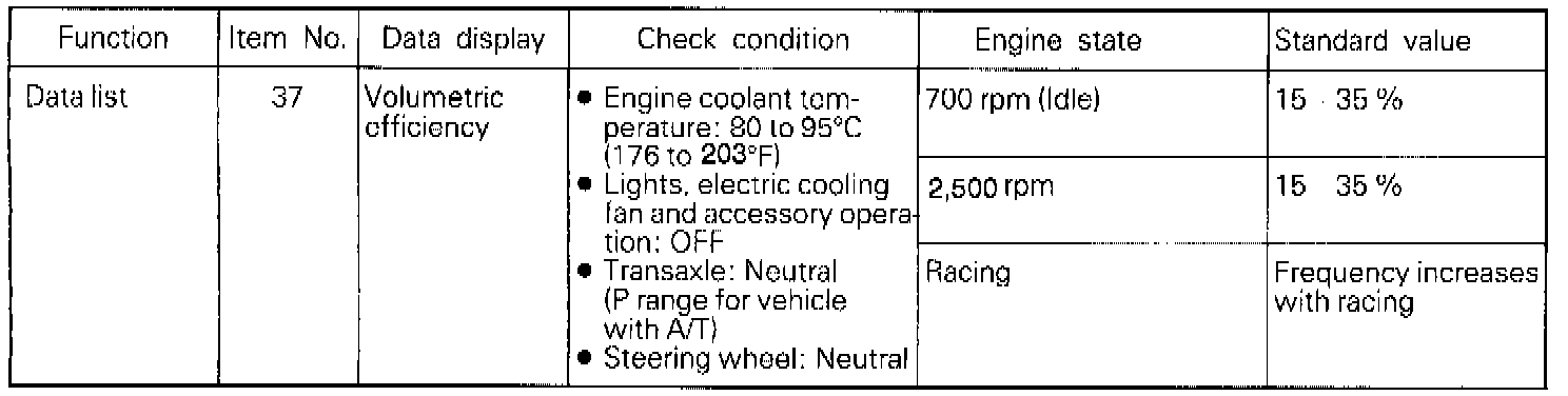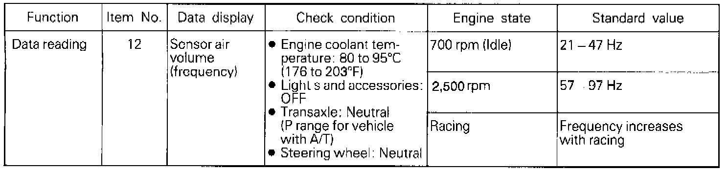NOTE: When the vehicle is new [within initial operation of about 500 km (300 miles)], the volume air flow sensor output frequency may be about 10% higher.