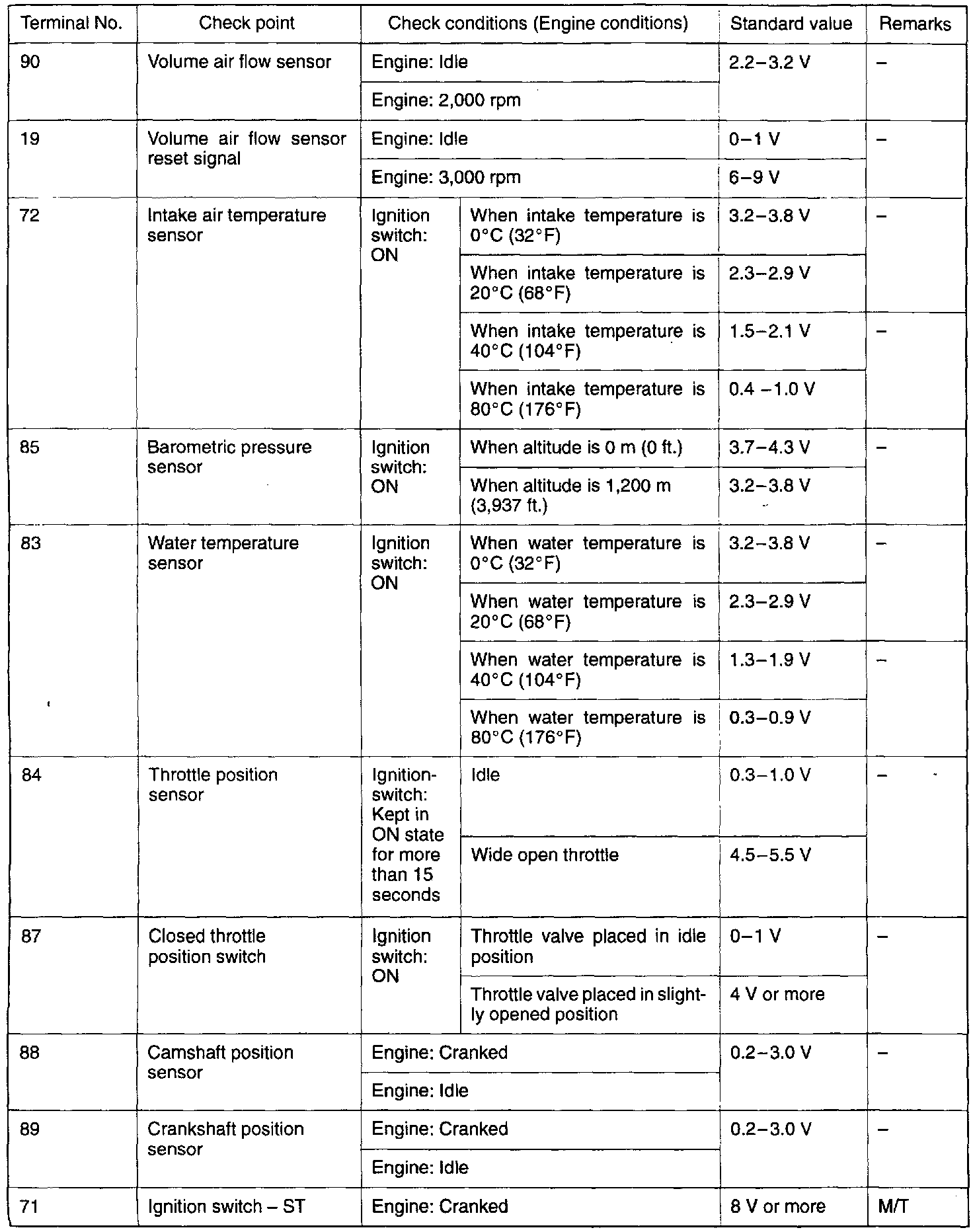 3. If the voltmeter shows any deviation from the standard value, check the corresponding sensor, actuator and related electrical wiring, then repair or replace.
