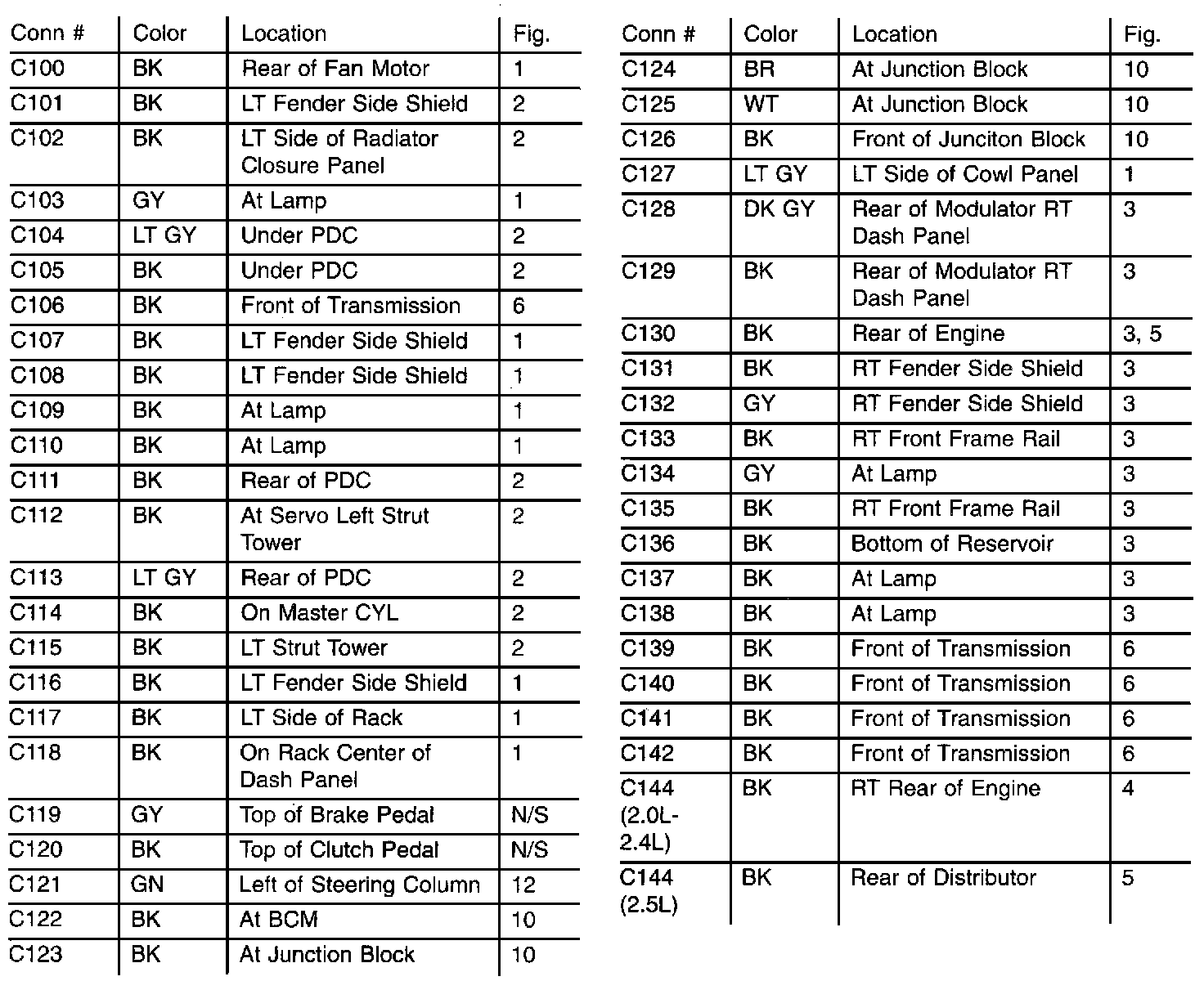 Connector/Ground Locations Diagram Index (Part 1 Of 4):