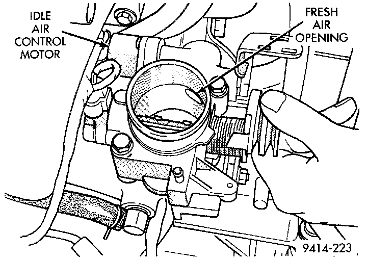 The Idle Air Control (IAC) motor is mounted on the throttle body. The PCM operates the idle air control motor (Fig. 28). The PCM adjusts engine idle speed through the idle air control motor to compensate for engine load, coolant temperature or barometric pressure changes.
