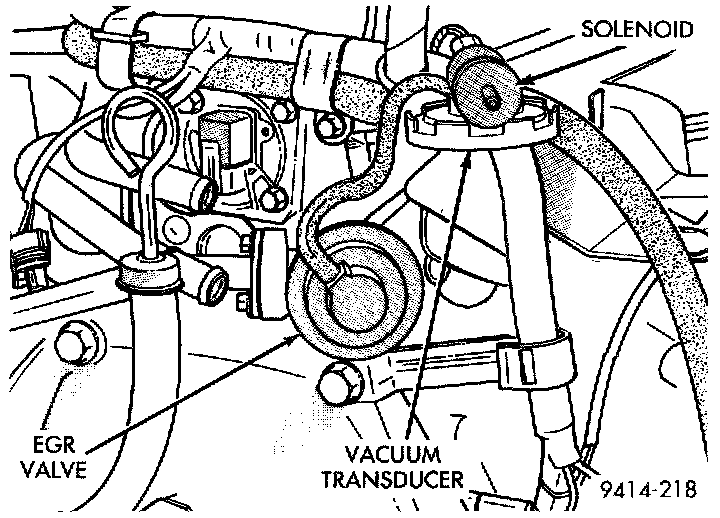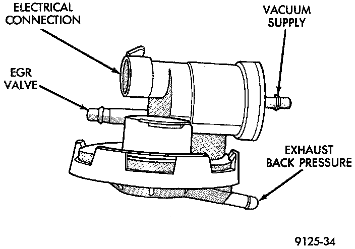 The Electric EGR Transducer contains an electrically operated solenoid and a back-pressure controlled vacuum transducer (Fig. 25). The PCM operates the solenoid based on inputs from the multiport fuel injection system. The solenoid/transducer and EGR valve are serviced as an assembly.