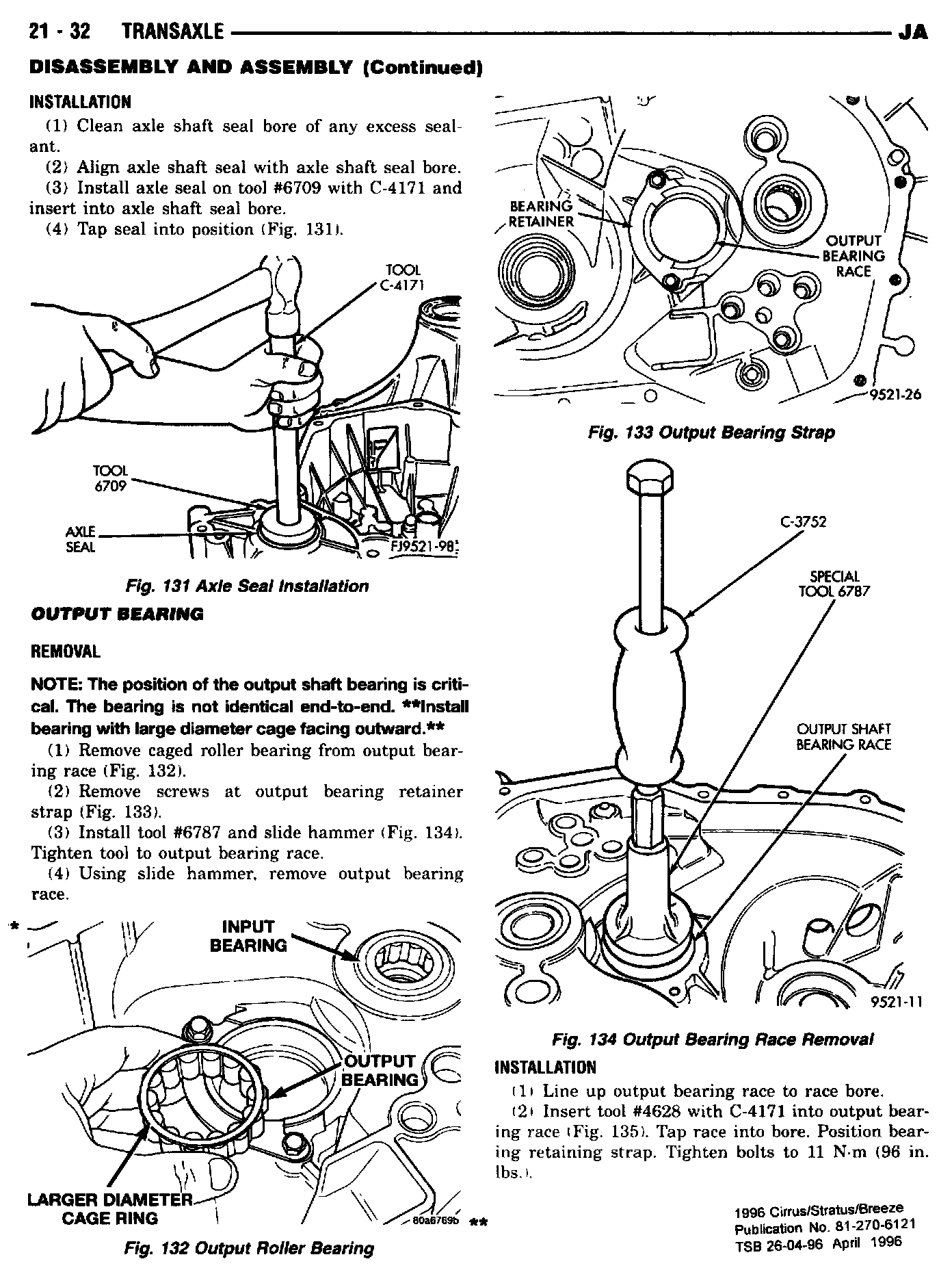 Changes to the transaxle output bearing procedure