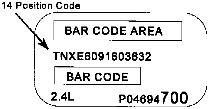 The engine code is a 14 position code located on a bar code label. Passenger cars have a blue label affixed to the upper timing belt cover and Minivans have an orange label affixed to the backside of the intake manifold (Figure 1). The date is the 6th, 7th, and 8th position of the 14 position code.