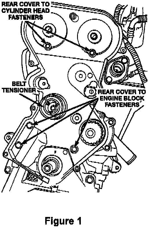 4. Remove rear timing belt cover fasteners and remove cover from engine (Figure 1).