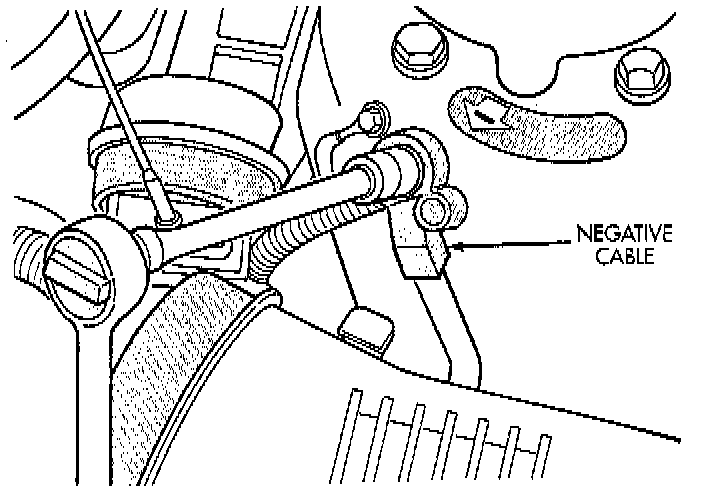 1. Disconnect the battery negative cable at strut tower.