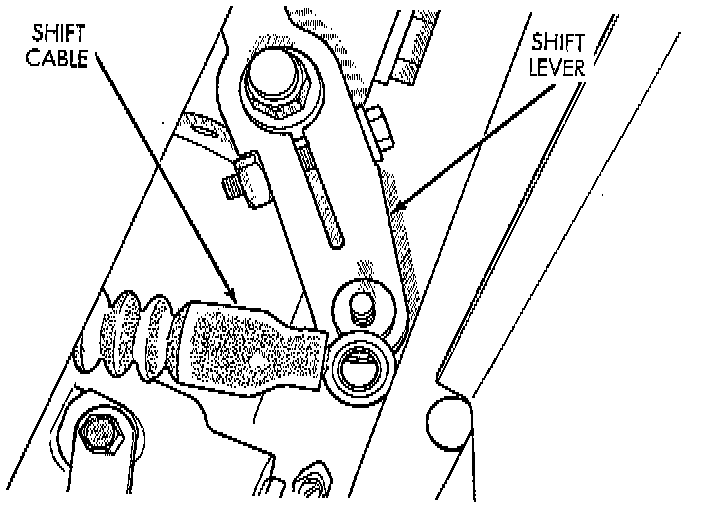 7. Remove shift cable at lever and at clamp on transaxle.