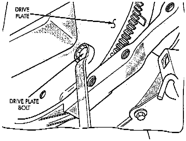 22. Rotate engine clockwise to line up converter bolts. Remove converter bolts. Mark converter for reassembly ease.