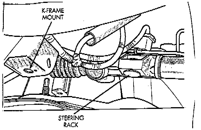 25. Loosen right side steering gear bolts. Loosen right side K - frame bolts.