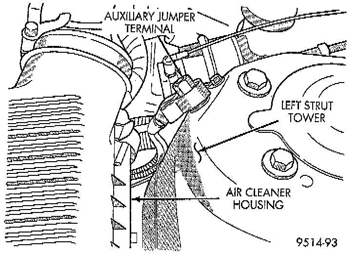 1. Disconnect negative cable from auxiliary jumper terminal.