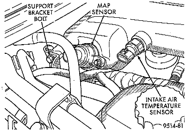 5. Remove plenum support bracket bolt located rearward of MAP sensor.