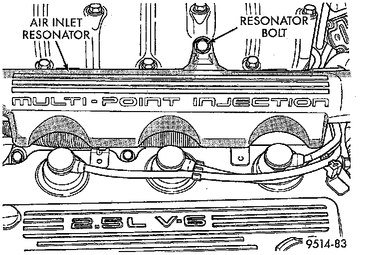 6. Remove bolt holding air inlet resonator to intake manifold.