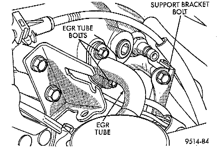 14. Remove plenum support bracket bolt located rearward of EGR tube.