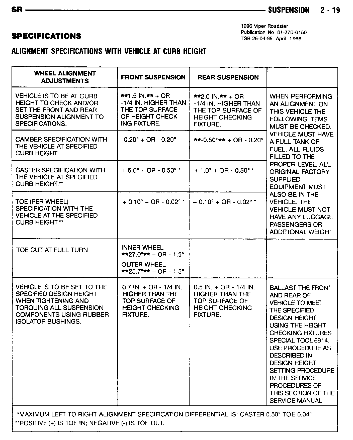 Steering/Suspension - Alignment Specification Revisions