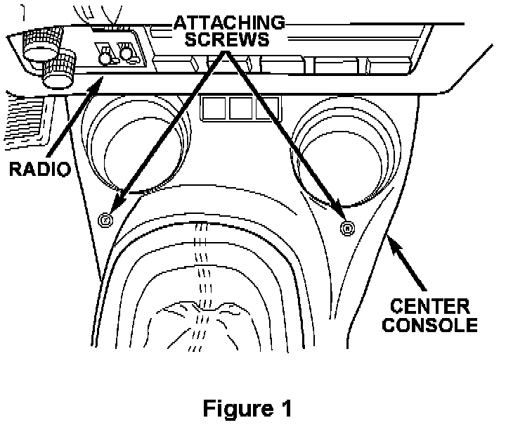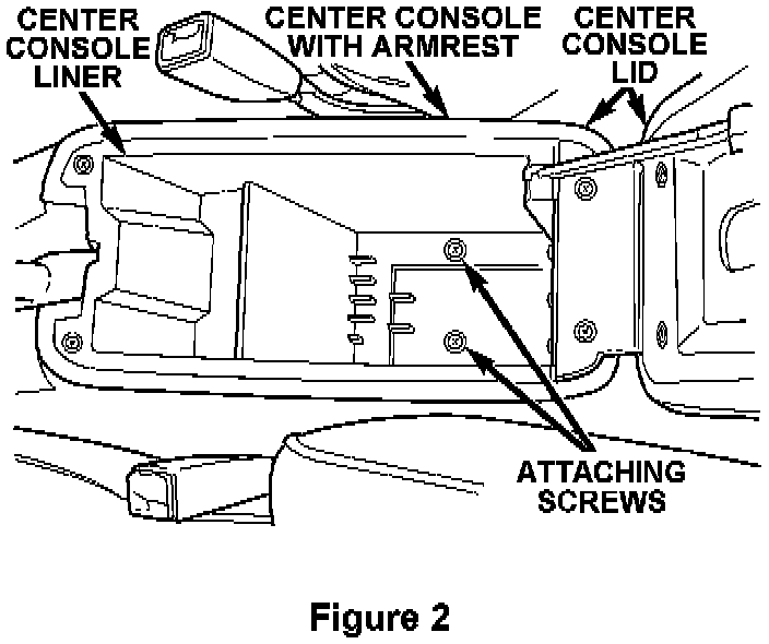 3. Remove the front two (2) center console attaching screws located near the cup holders (Figure 1).