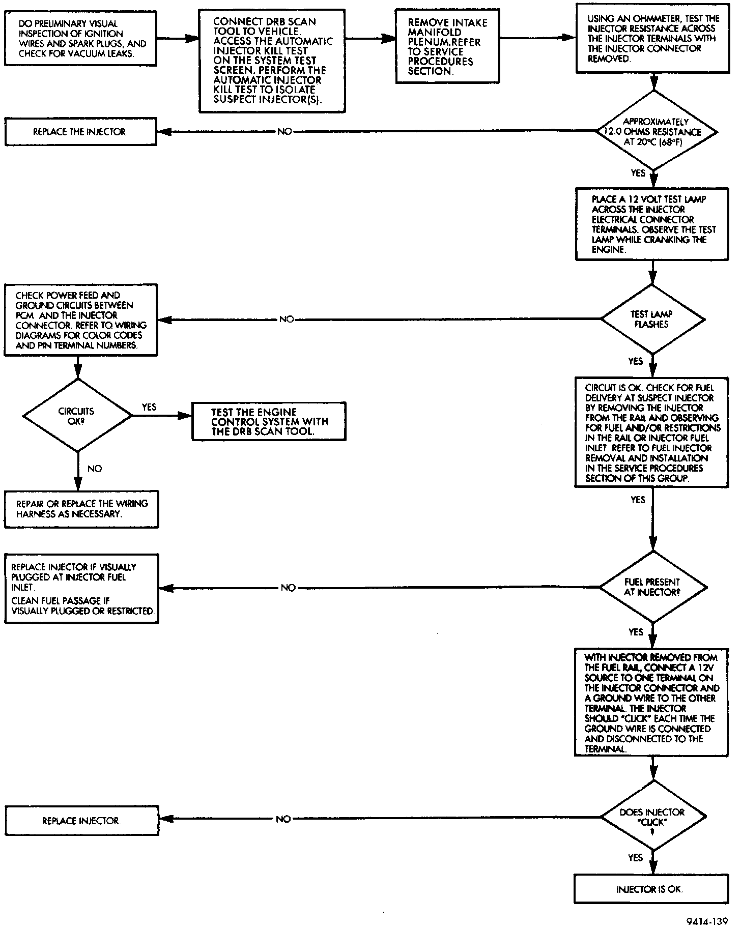 For fuel injector diagnosis, refer to the Fuel Injector Diagnosis chart.