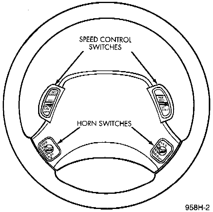 There are two separate switch pods that operate the speed control system. The steering-wheelmounted switches use multiplexed circuits to provide inputs to the PCM for ON, OFF, RESUME/ACCELERATE, SET/COAST and CANCEL modes. Refer to the owner's manual for more information on speed control switch functions and setting procedures.