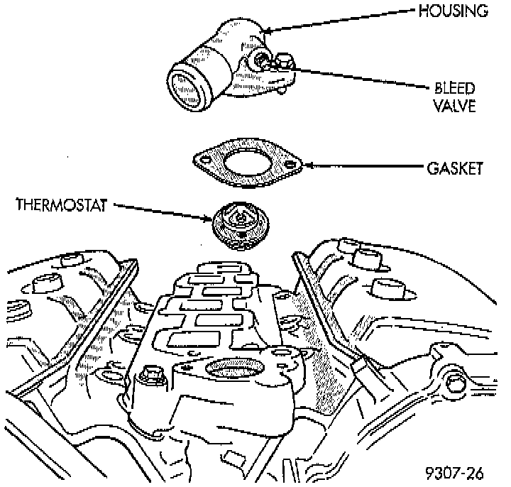 2. Remove thermostat housing bolts and housing.