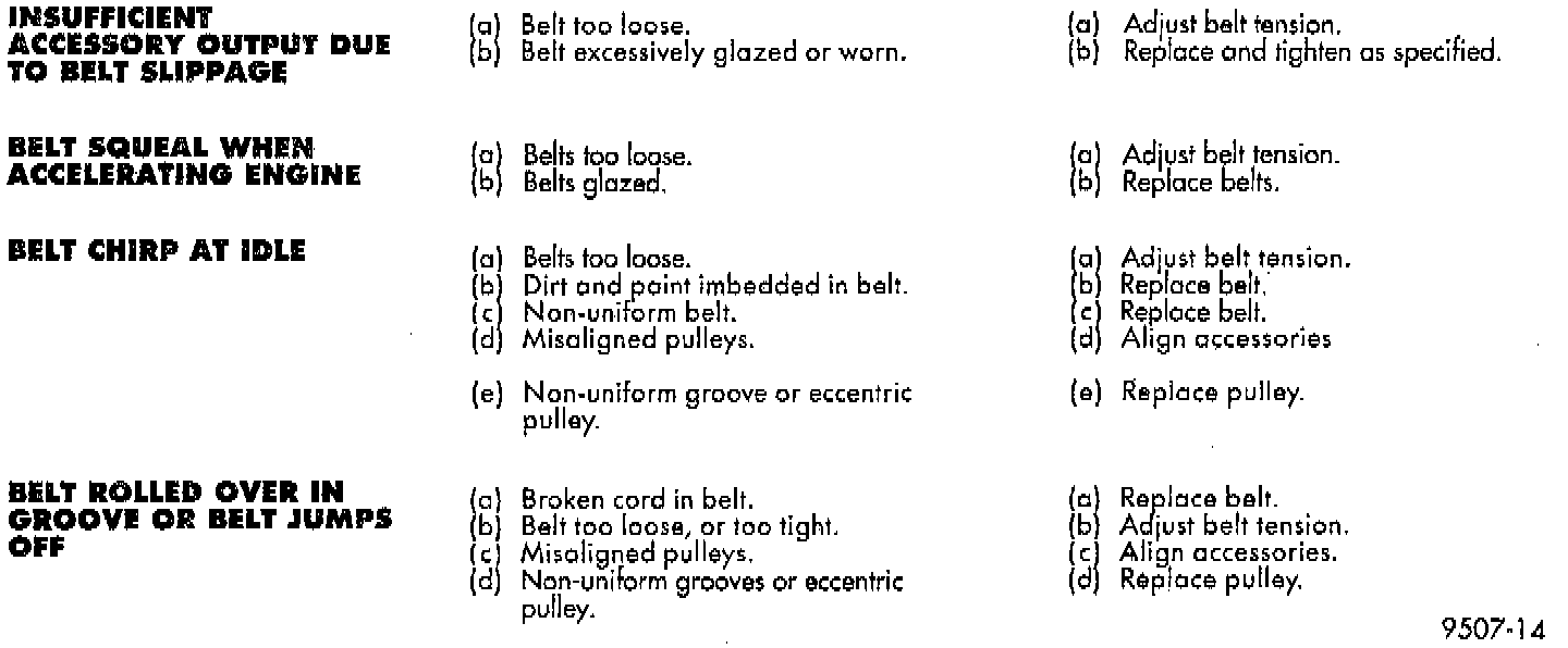 Satisfactory performance of the belt driven accessories depends on belt condition and proper belt tension.