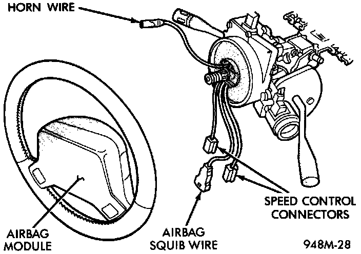2. Remove speed control switches or covers from steering wheel back shroud and disconnect the wires.