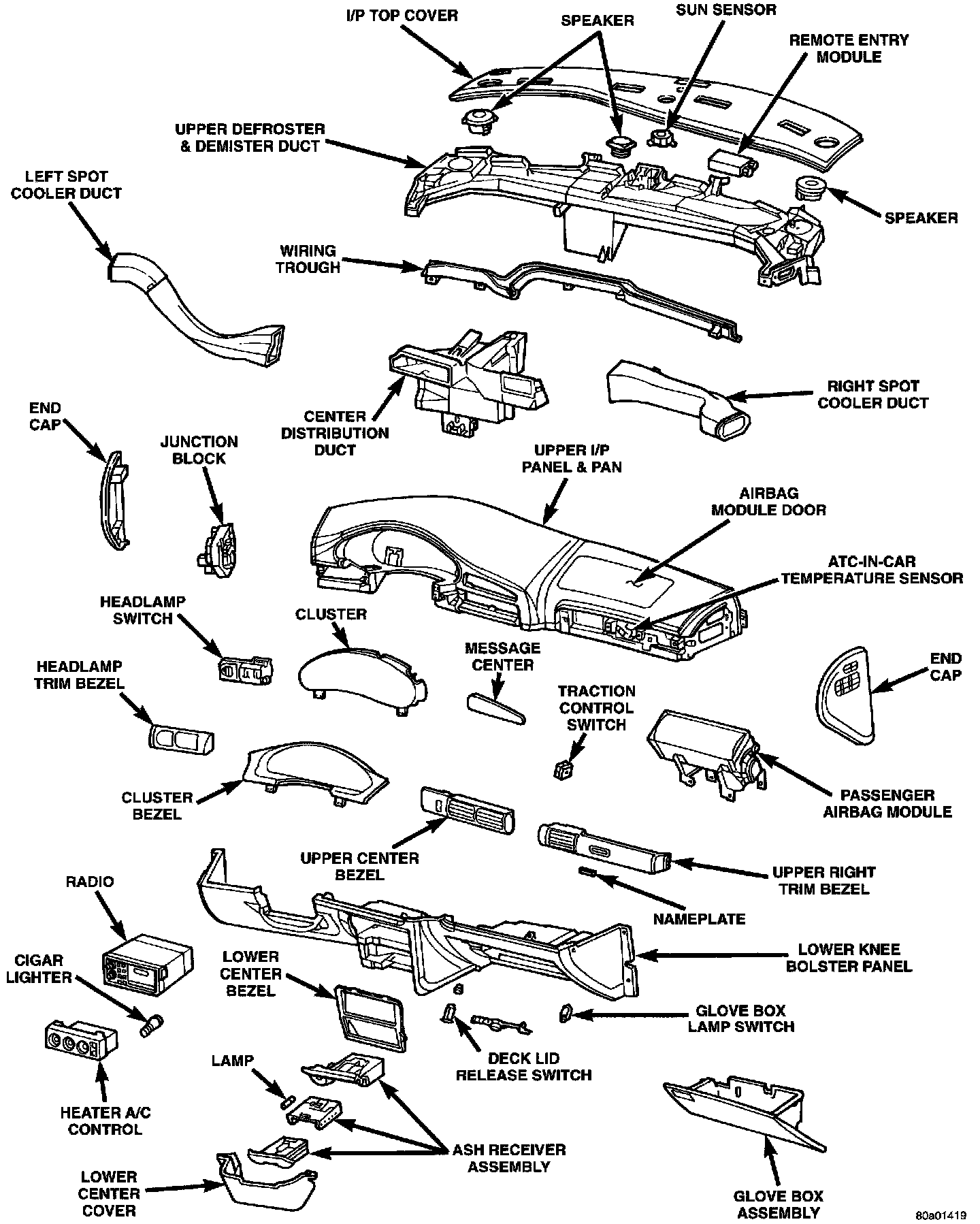 1. Install the NEW center distribution duct to the NEW instrument panel and pad assembly.