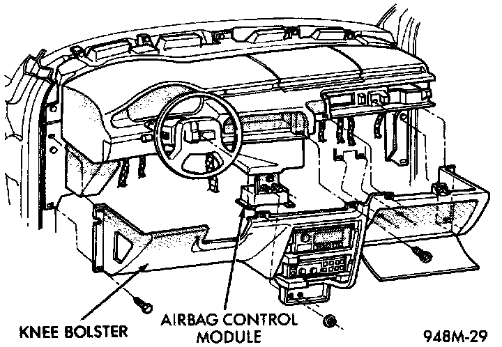 6. Remove six fasteners holding airbag assembly to the instrument panel collar.