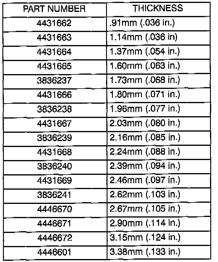 See chart to select the proper No. 4 thrust plate.