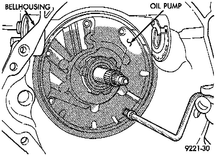NOTE: To align oil pump during installation, use threaded dowels or Phillips screwdrivers.