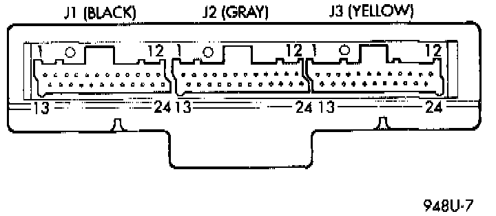 8. Disconnect the J3 24-way (bone/yellow) connector from the ECM.