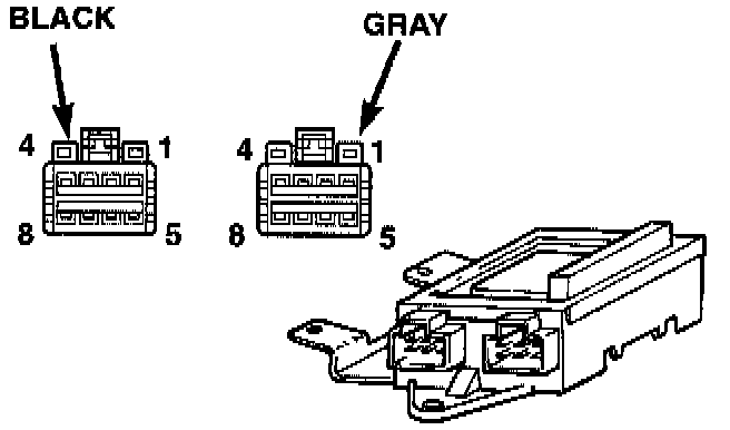 4. Using a ohmmeter, check the Pin 8 of the black connector for continuity to ground. If not OK, check and repair as necessary.