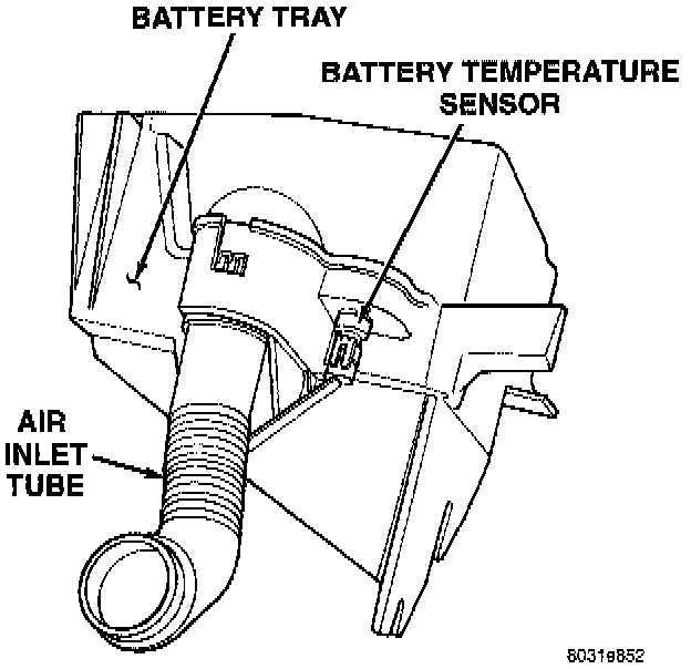 The sensor is located forward of the vehicle battery, and is attached to the battery tray.