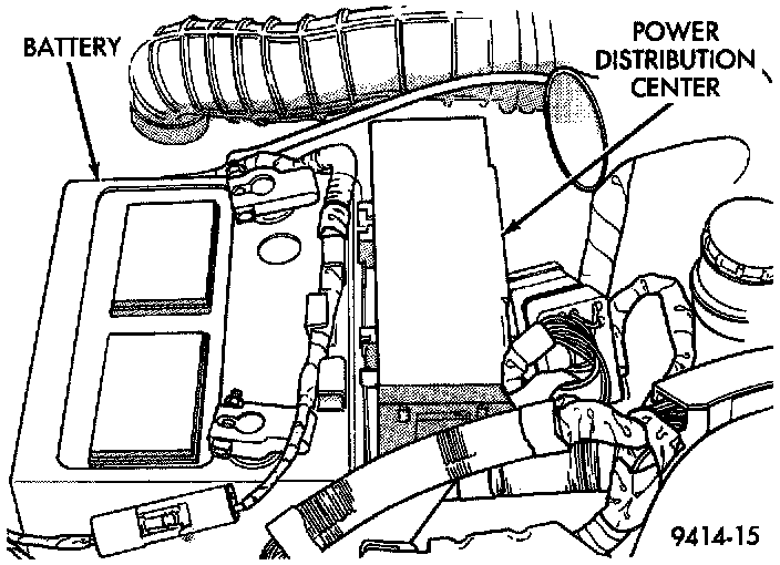 The air conditioning clutch relay is located in the PDC (Fig. 22). The inside top of the PDC cover has a label showing relay and fuse location.