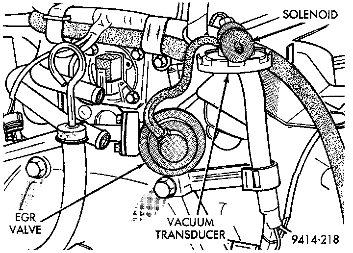 The Electric EGR Transducer contains an electrically operated solenoid and a back-pressure controlled vacuum transducer (Fig. 24). The PCM operates the solenoid based on inputs from the multi- port fuel injection system. The transducer and EGR valve are serviced as an assembly