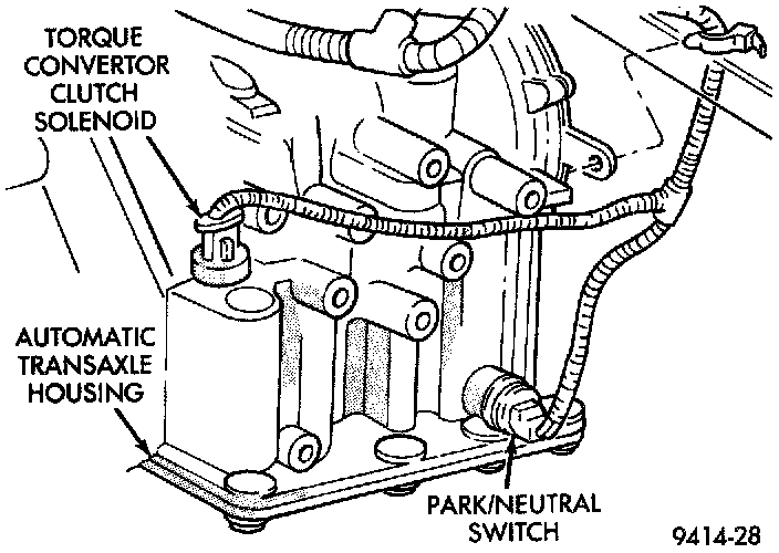 Three-speed automatic transaxles use a torque converter clutch solenoid. The PCM controls the engagement of the torque converter clutch through the solenoid (Fig. 30). The torque converter clutch is engaged up only in direct drive mode.