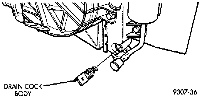 Turn the drain cock stem counterclockwise to unscrew the stem. When the stem is unscrewed to the end of the threads, pull the stem from the radiator tank.