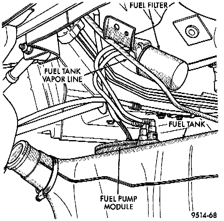 13. Remove tank from vehicle. Slide tank forward during removal to allow fill neck to clear suspension cross-member.