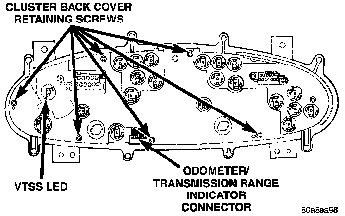 4. Remove screws attaching from the back of speedometer and remove the odometer/transmission range indicator display.