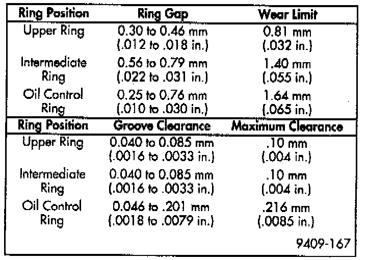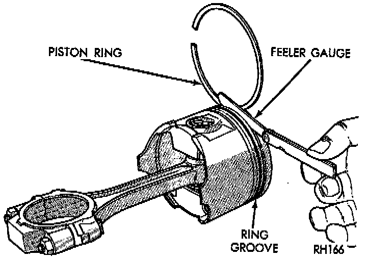 Wipe cylinder bore clean. Insert ring and push down with piston to ensure it is square in bore. The ring gap measurement must be made with the ring positioning at least 12 mm (0.50 inch) from bottom of cylinder bore. Check gap with feeler gauge.