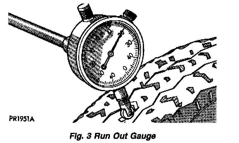 - Use run out gauge D-128-TR, or equivalent to determine run out.