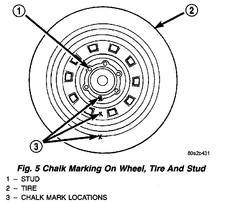 - Check radial run out. If still excessive, mark tire sidewall, wheel, and stud at point of maximum run out and proceed to Method 2.