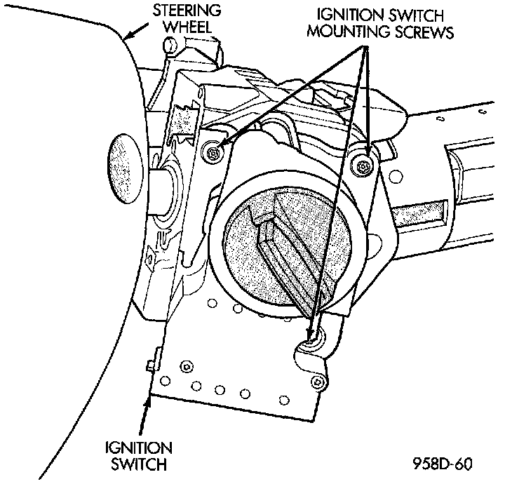 The ignition switch is located on the steering column. The Key-In-Switch is located in the ignition switch module. For diagnosis of the Key-In-Switch, refer to Section 8U.