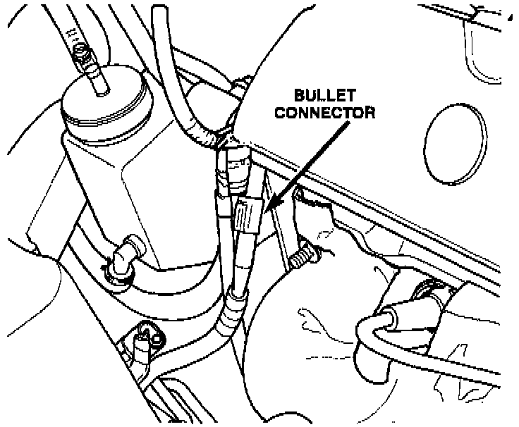 1. Disconnect positive battery cable at bullet connector near power steering pump.