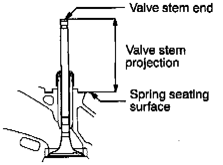 (1) Assemble the valve, then measure the valve stem projection between the end of the valve stem and the spring seating surface. If the measurement exceeds the specified limit, replace the valve seat.